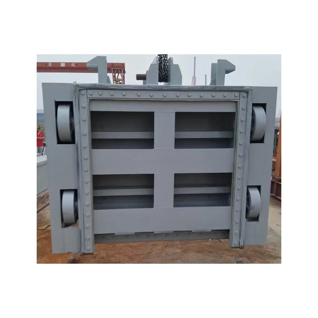 平面定輪鋼閘門與閘槽配合使用,能達到開關自如、密封性能好,每米長度的滲水量不超過0.03升/秋該閘門具安裝使用方便,止水性能好,防腐性能強等優點。