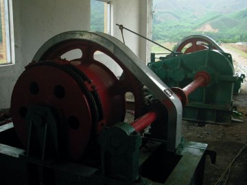 用鋼索或鋼索滑輪組作吊具與閘門相連接,通過齒輪傳動系統(tǒng)使卷揚筒繞、放鋼索從而帶動升降的機械,也叫做鋼絲繩固定式卷揚機。它構(gòu)造較簡單易于制造,維護檢修方便,廣泛應(yīng)用于各種類型閘門的啟閉。卷揚式啟閉機分為單吊點和雙吊點兩種。雙吊點卷揚式啟閉機是通過連接軸將兩個單吊點的啟閉機連接在一起進行同步運行,可做成一邊驅(qū)動或兩邊驅(qū)動。卷揚式啟閉機通常是一扇閘門用一臺啟閉設(shè)備,安裝在高出閘門槽頂部的閘墩上。